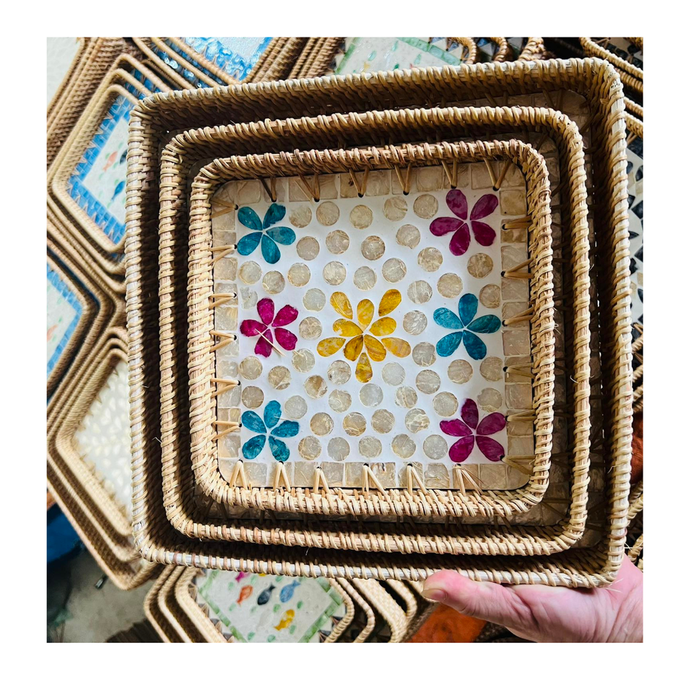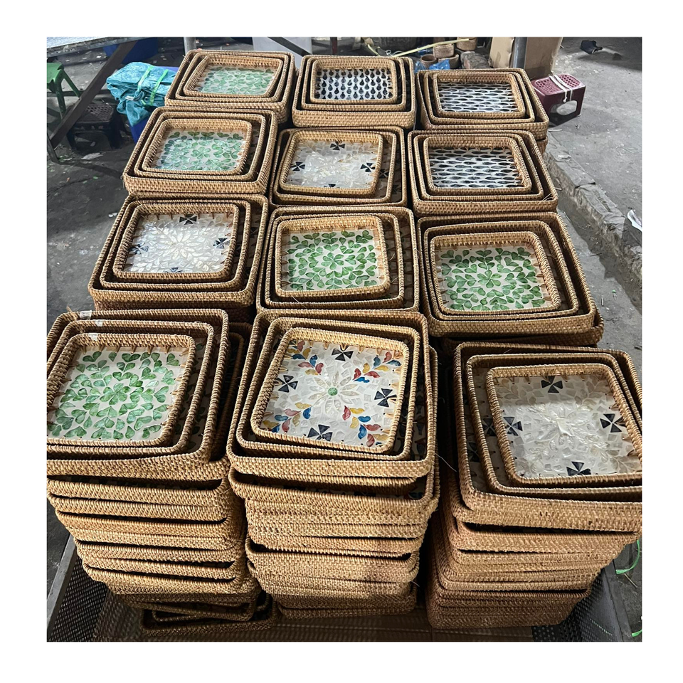 ถาดเสิร์ฟหวายขายส่ง ประดับมุก งานแฮนด์เมด ถาดตกแต่งบ้าน