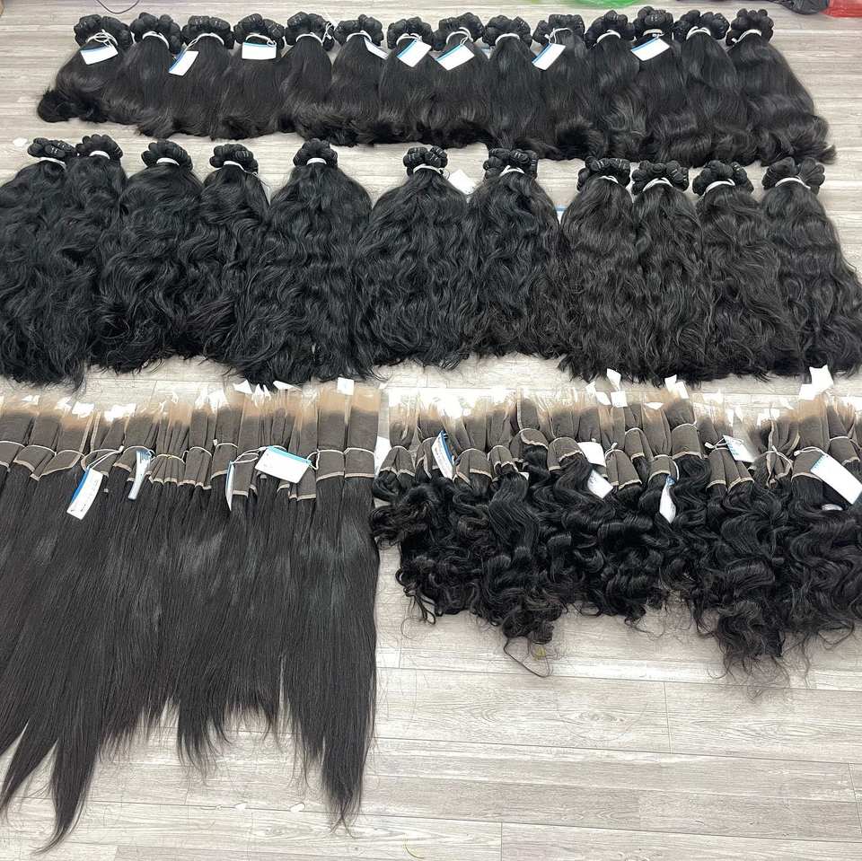 ขายส่งผมดิบที่ยังไม่ได้มีการแปรรูปเวียดนามเวอร์จินผมหยักธรรมชาติผู้ขายราคาขายส่งหนังกําพร้าชิดการต่อผมดิบ