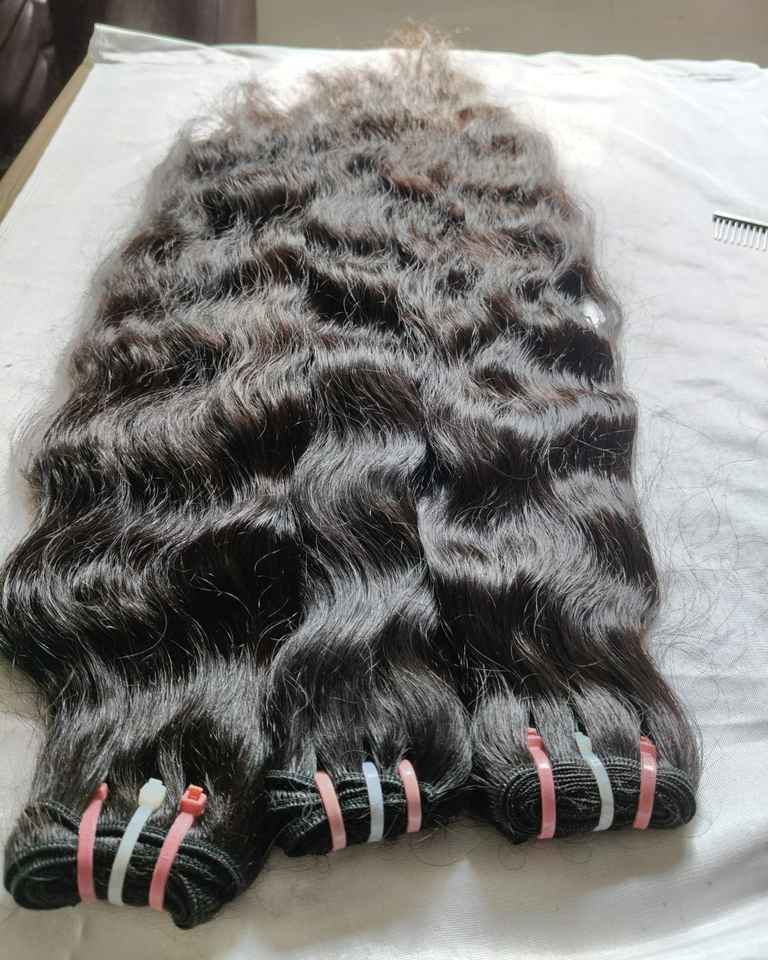 ผมอินเดียดิบจากอินเดียผมชาวอินเดียนแดงเรียงตามแนว100% ผมมนุษย์ยังไม่ผ่านกระบวนการ