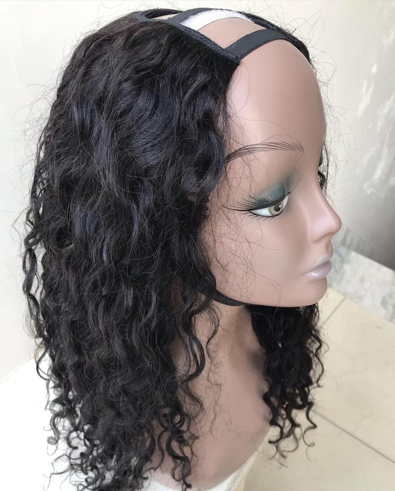 Product Name:100% Human Hair Custom Logo Natural Curly Unprocessed U Part Wig