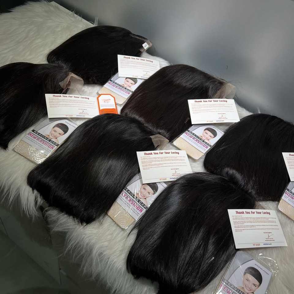วิกผมเวียดนามแท้แบบขายส่ง วิกผมบ๊อบ สีดำธรรมชาติ ขนาด 2x4 2x6 4x4 วิกผมลูกไม้แบบไม่ต้องใช้กาว