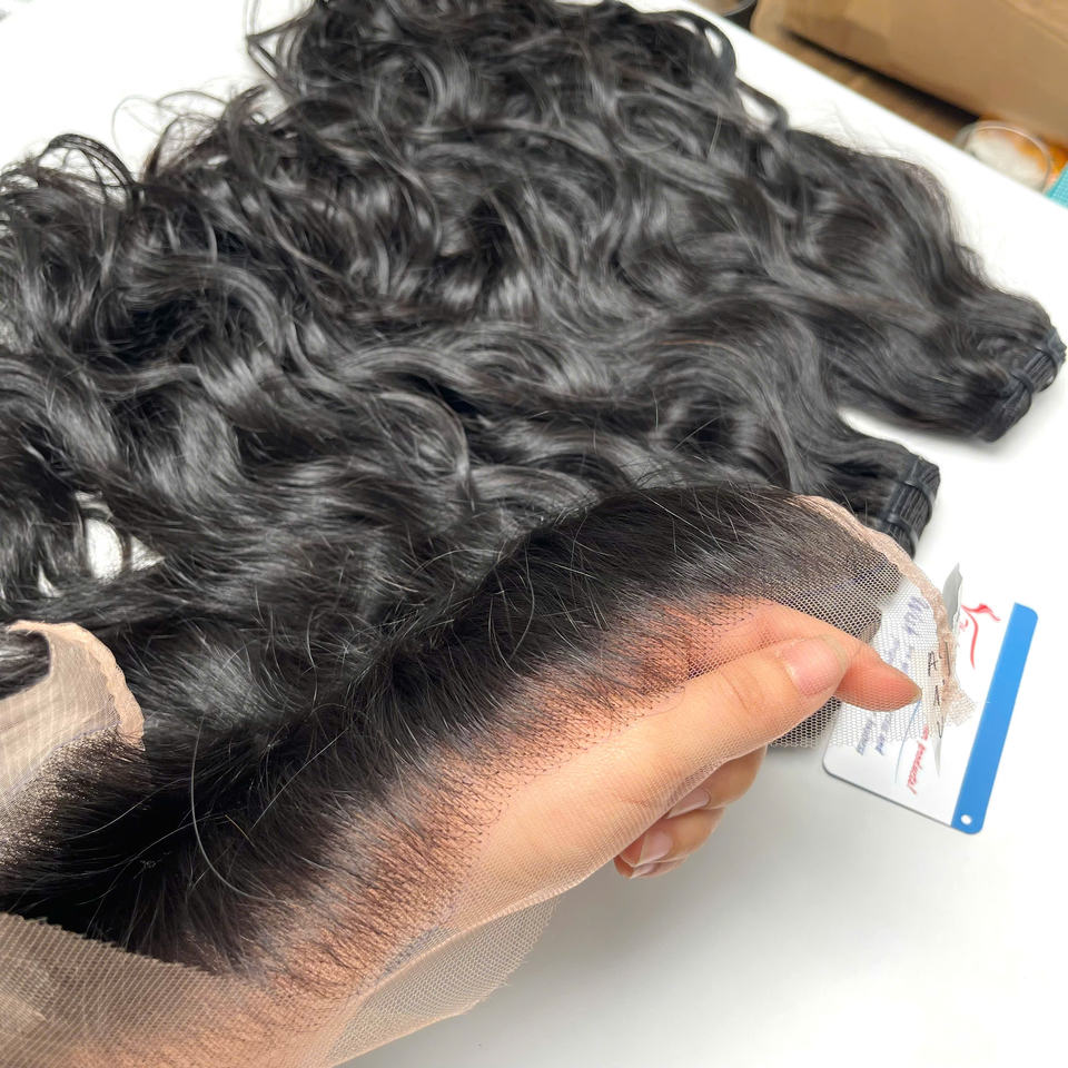 ผมหยักศกดิบแบบเวียดนามมีความละเอียดสูงจากสวิสหน้าผากมีผ้าลูกไม้บางเส้นผมธรรมชาติ