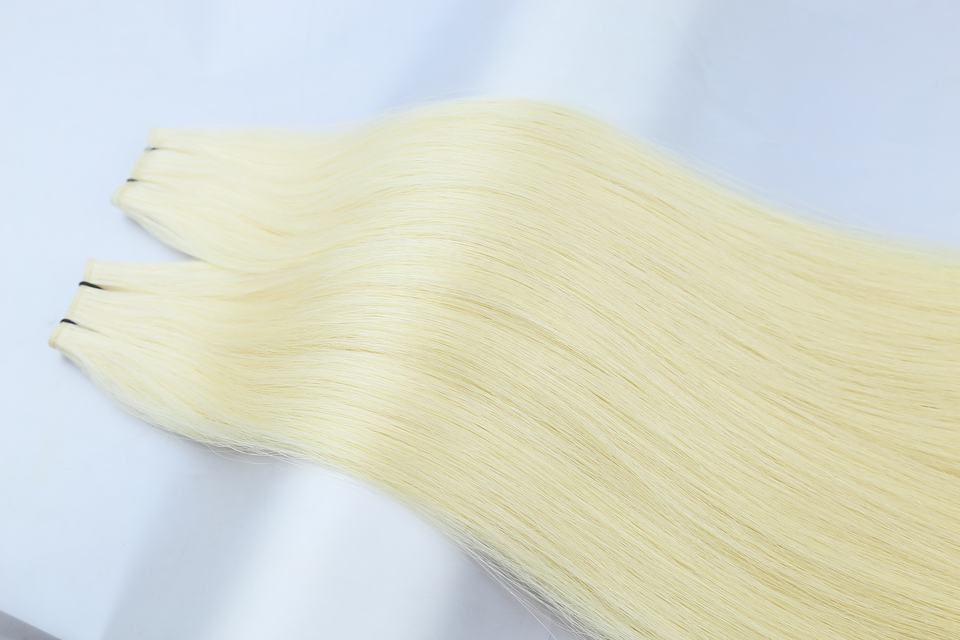 ขายส่งผมแท้ 100% แบบยุโรป เส้นเดียว ความยาว 22 นิ้ว สีบลอนด์ตรง ไฮไลท์ ผมดิบธรรมชาติ จัดเรียงเกล็ดผมอย่างดี สำหรับต่อผม
