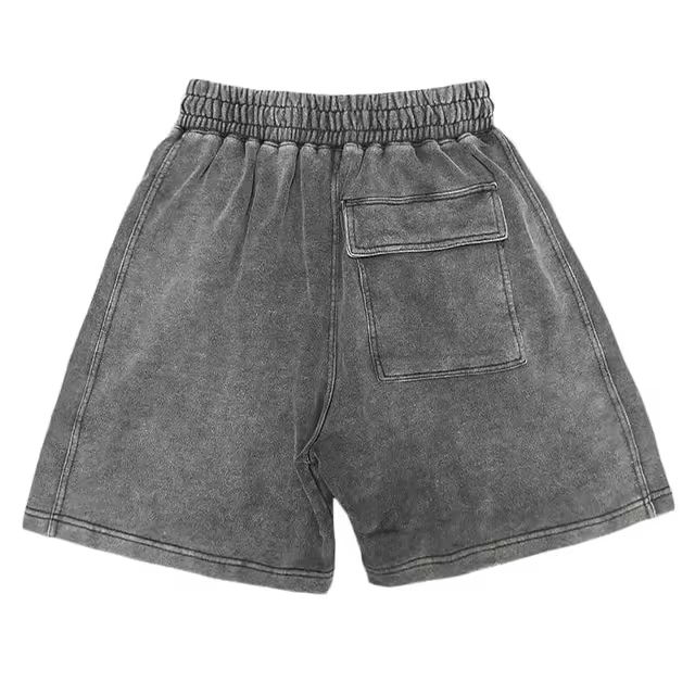 กางเกงยีนส์ขาสั้นผู้ชายสไตล์ลำลองสำหรับขายส่ง ผ้าเดนิมแบบวินเทจ ขาดเซอร์ๆ ฟอกสีแบบ Stone Wash