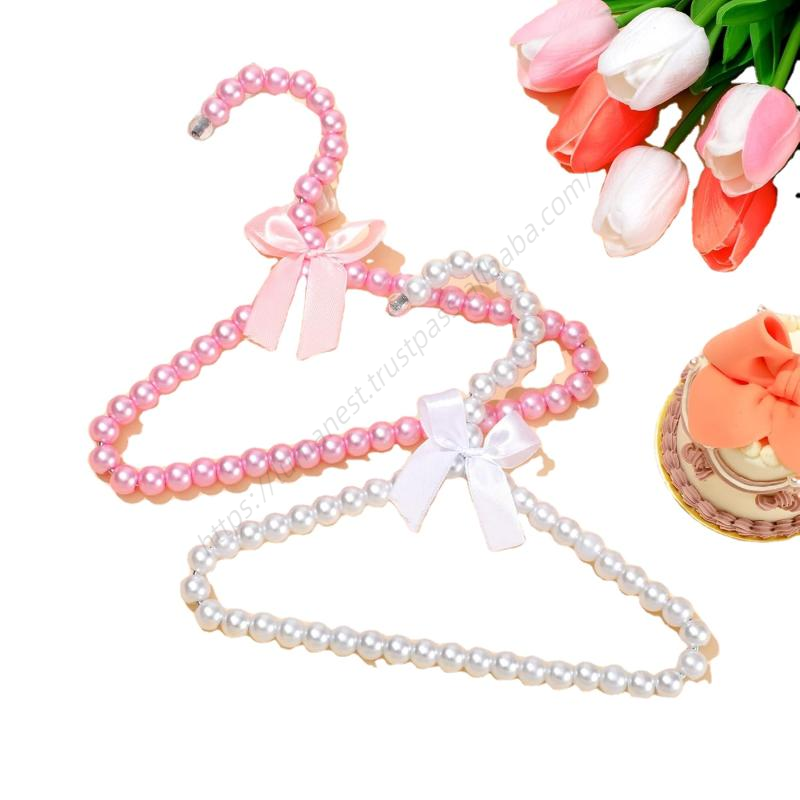 ไม้แขวนเสื้อพลาสติกประดับมุกสีขาวน่ารัก พร้อมส่งขายส่ง สำหรับเสื้อผ้าและกางเกง
