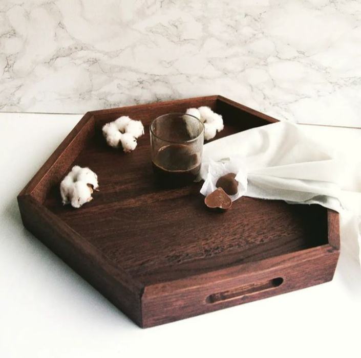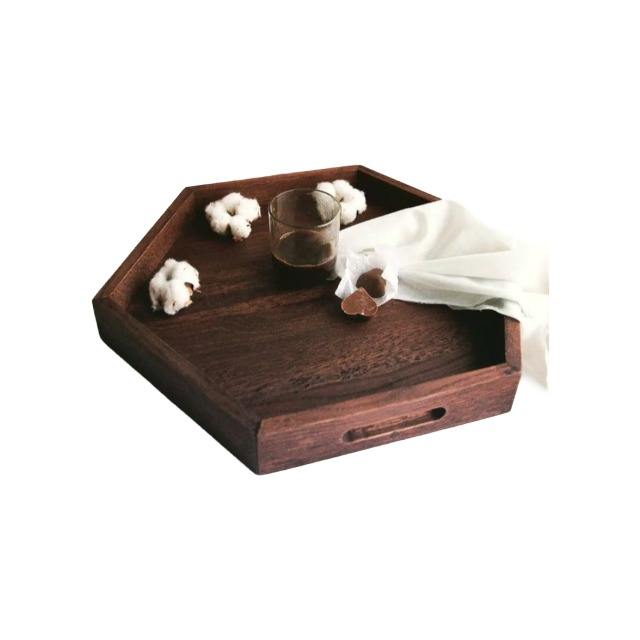ถาดเสิร์ฟกาแฟอะคาเซียแท้ไม้สีเข้มเป็นมิตรต่อสิ่งแวดล้อม