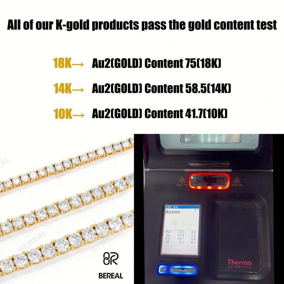สร้อยคอโซ่เทนนิสสีทอง10K 14K 18K VVS Moissanite สร้อยข้อมือเพชรตัดแบบกลมสวยงาม