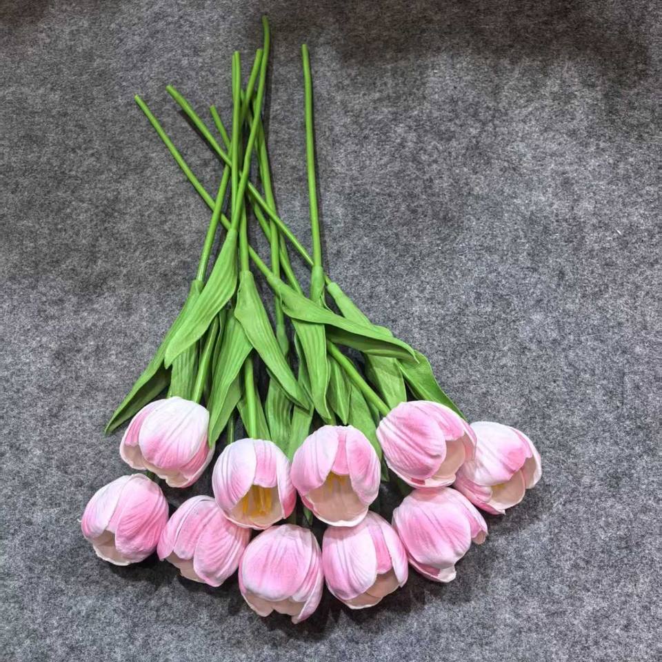 Wholesale Real Touch Pink White Blue PU Rubber Tulips Artificial Silicone Big Moisturizing Hand-feel Wedding Flower