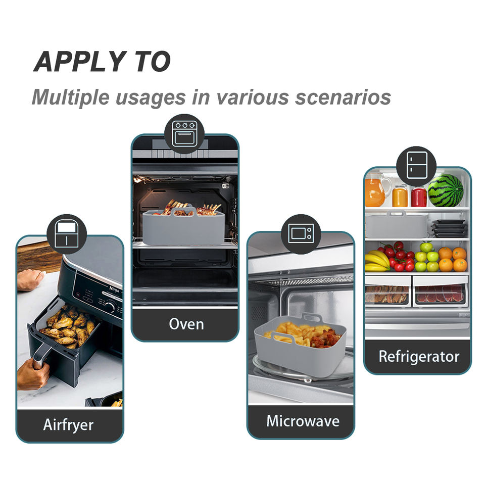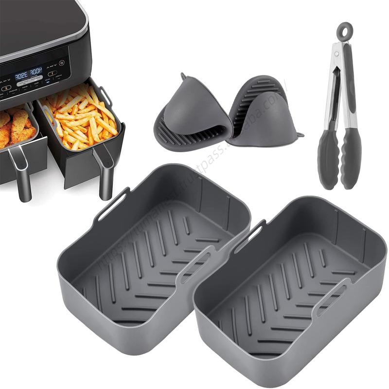 ตะกร้าซิลิโคนสำหรับหม้อทอดไร้น้ำมัน รูปทรงสี่เหลี่ยมผืนผ้า ใช้ซ้ำได้ ปลอดภัยสำหรับอาหาร ใช้กับหม้อทอดไร้น้ำมันแบบสองช่องได้