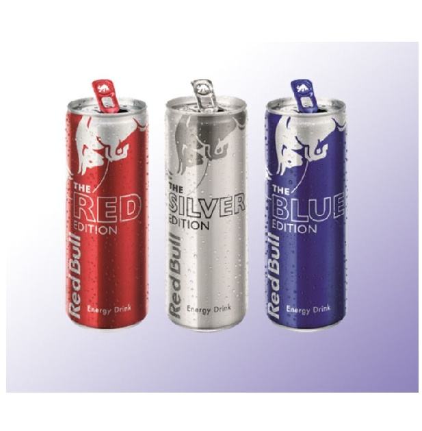 เรดบูล รุ่นพิเศษ 250 มล. สีแดง น้ำเงิน เงิน เหลือง เครื่องดื่มให้พลังงาน แพ็ค 24 กระป๋อง เหมาะสำหรับสำนักงานและร้านกาแฟ