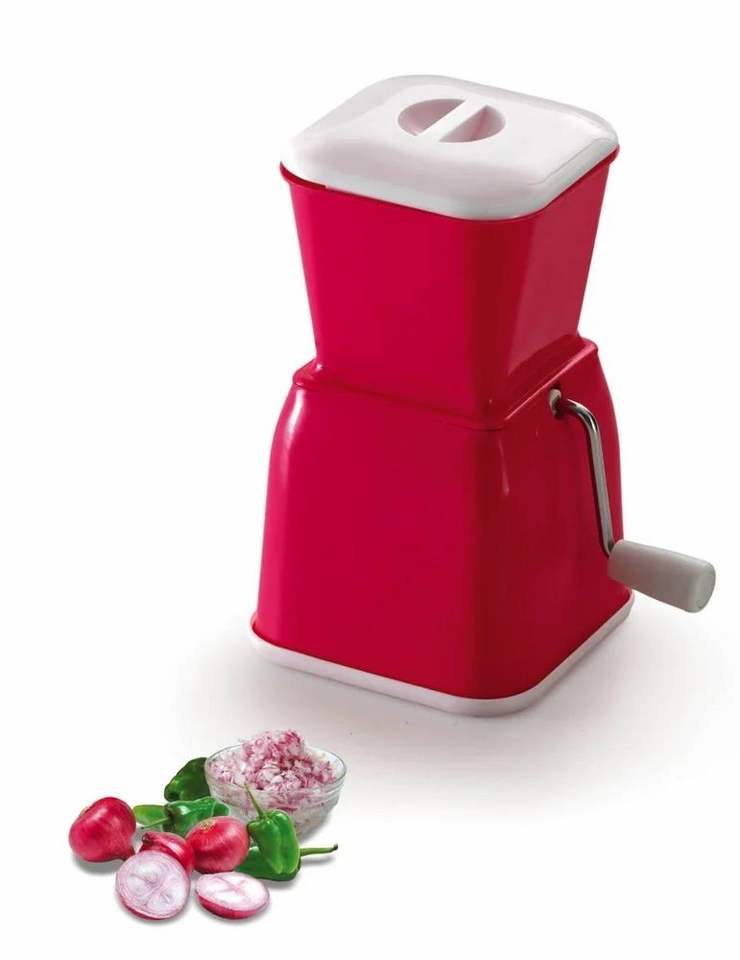 เครื่องหั่นพริกพลาสติกสีแดงแบบขายส่ง พร้อมฝาปิด ดีไซน์ทรงสี่เหลี่ยม ใบมีดสแตนเลส ใช้งานง่าย