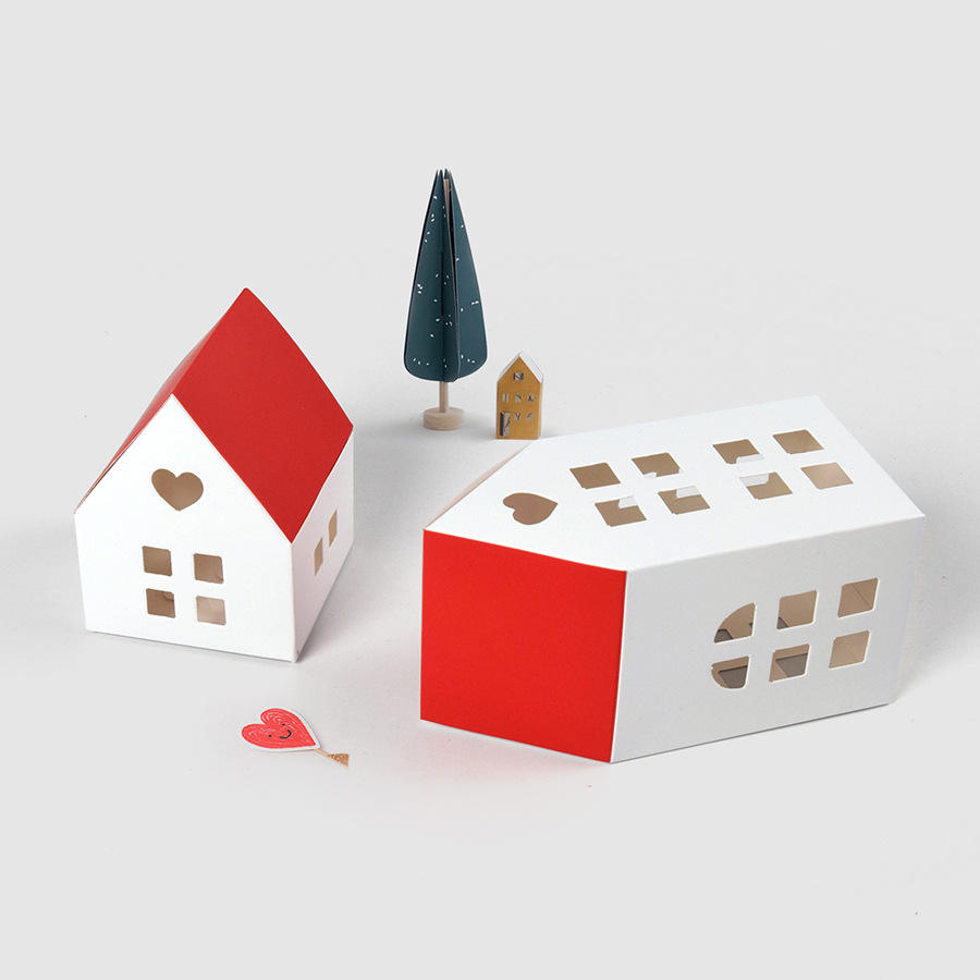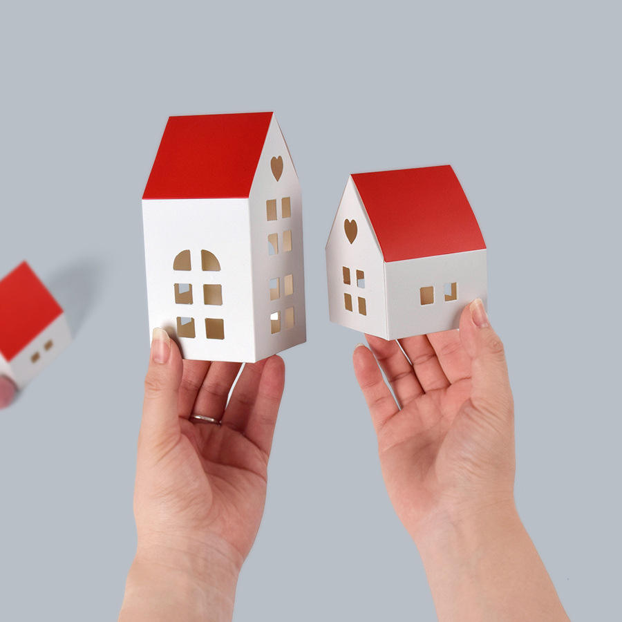 กล่องของขวัญคุกกี้ขนมอบรูปหลังคาแดงกล่องของขวัญสำหรับทำขนมอบคุกกี้บราวนี่ของขวัญ