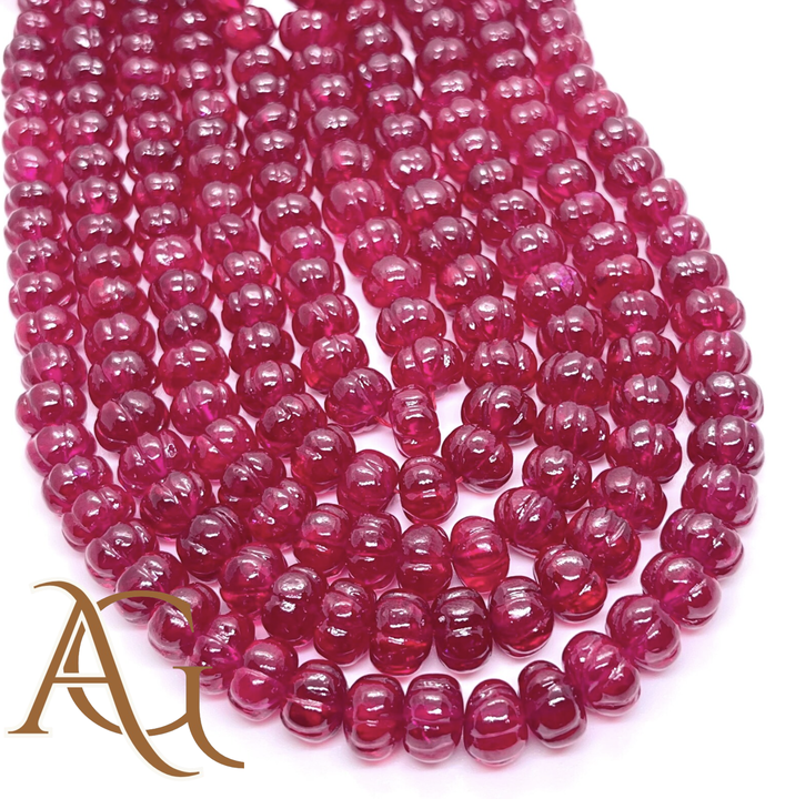 ลูกปัดทับทิมสังเคราะห์สีแดงทรงฟักทอง เรียบเนียน ขายส่งจากจีน สำหรับทำเครื่องประดับ ความยาว 14 นิ้วต่อเส้น