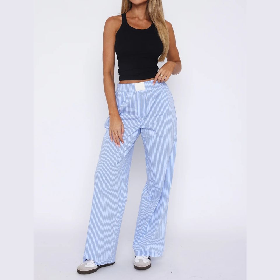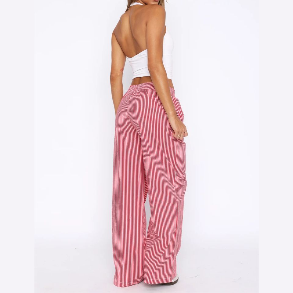 กางเกงเอวสูงป้องกันการเกิดริ้วรอยแถบสีแดงกางเกงลำลองทรงหลวมระบายอากาศได้ดีปรับแต่งขนาดได้ตามต้องการ