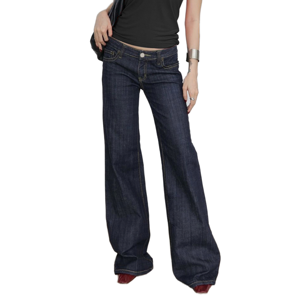 กางเกงคาร์โก้ลำลองทรงหลวมขายส่ง เอวสูง ผ้ายีนส์สีพื้น แต่งกระดุม ระบายอากาศได้ดี เป็นมิตรกับสิ่งแวดล้อม กันลม