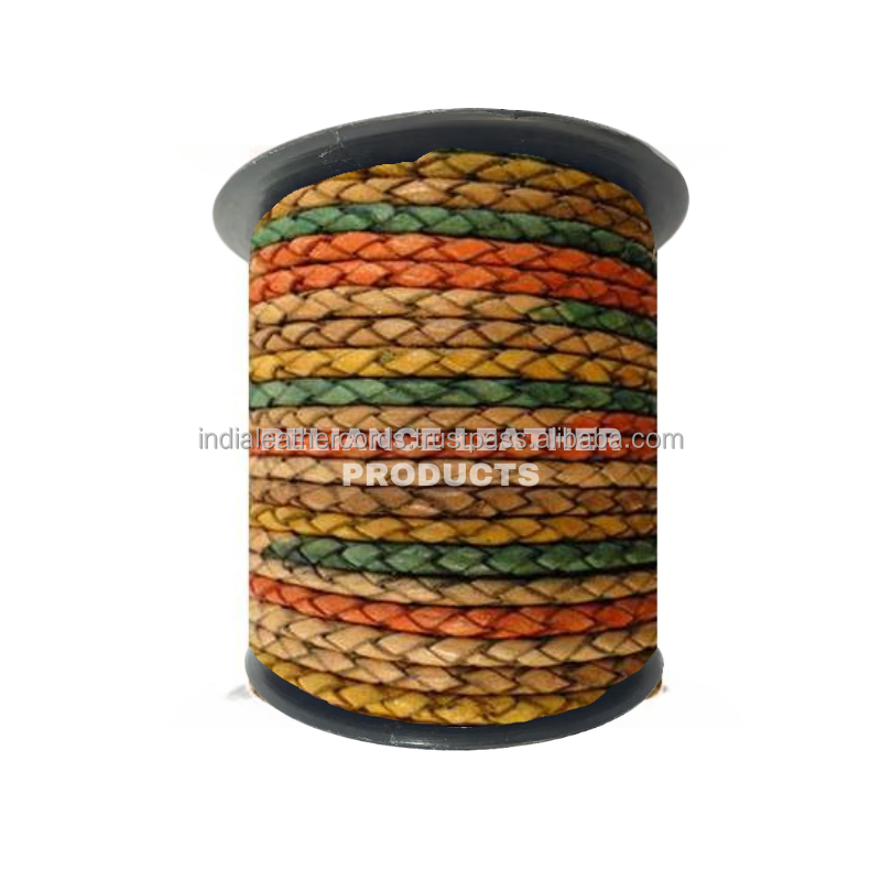 สายหนังแท้ลายชาวคริสต์สไตล์ยิปซีสายถักโบโลมีสองสีปรับแต่งได้ขนาด100%