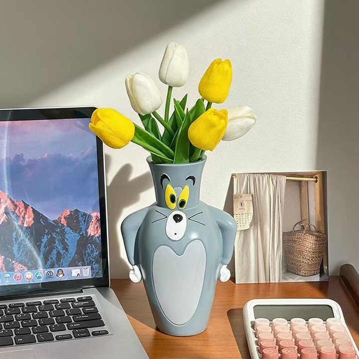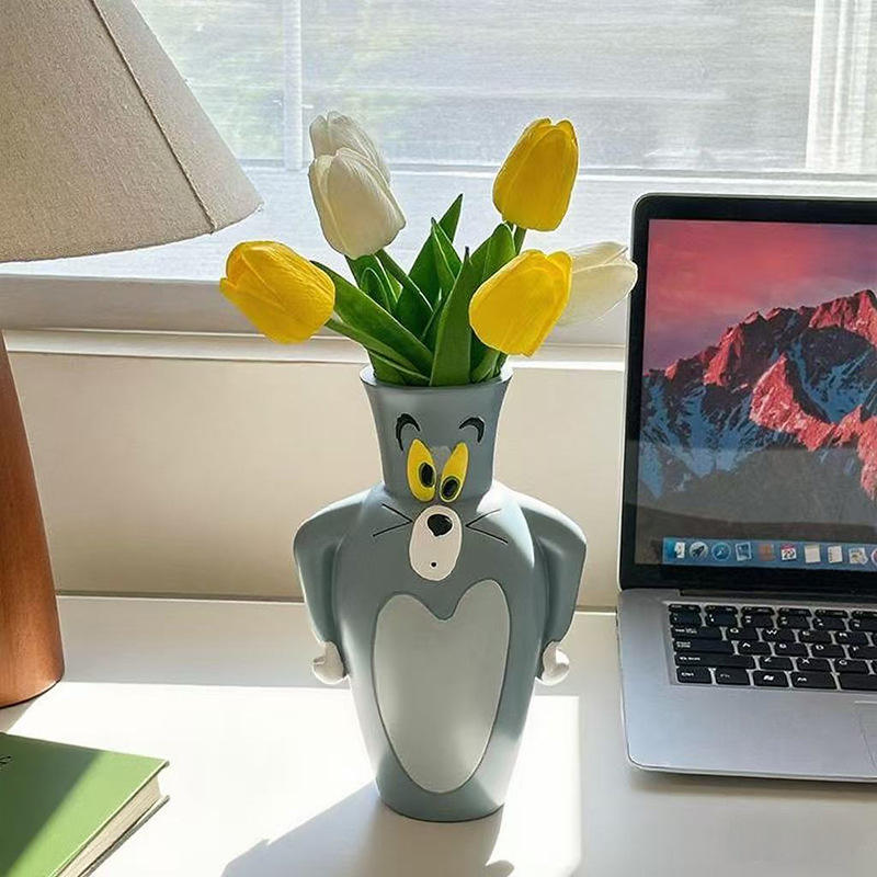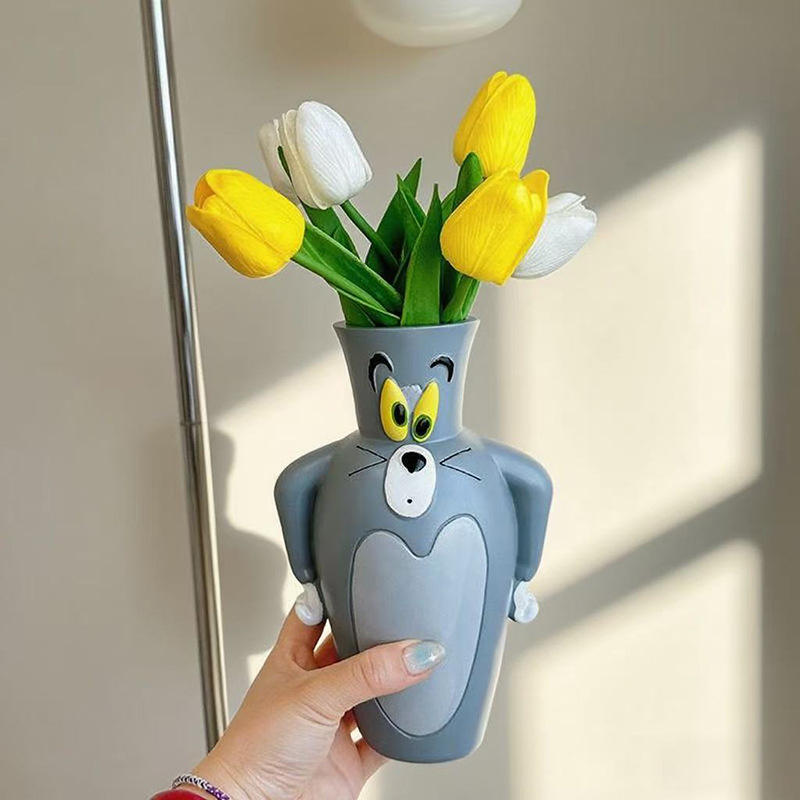 Wholesale Resin Art Deco Handicraft Creative Fun Talking Tom Shaped Eco-Friendly Decorative Vases