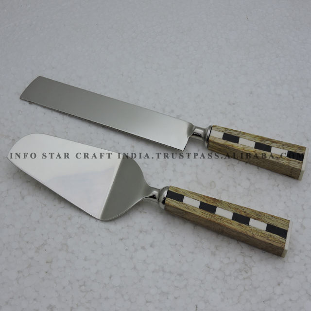 ไม้เรซินและสแตนเลสงานแต่งงานหรืองานเลี้ยงครบรอบฉลองเค้กพลั่วและมีดตัดเค้กชุด