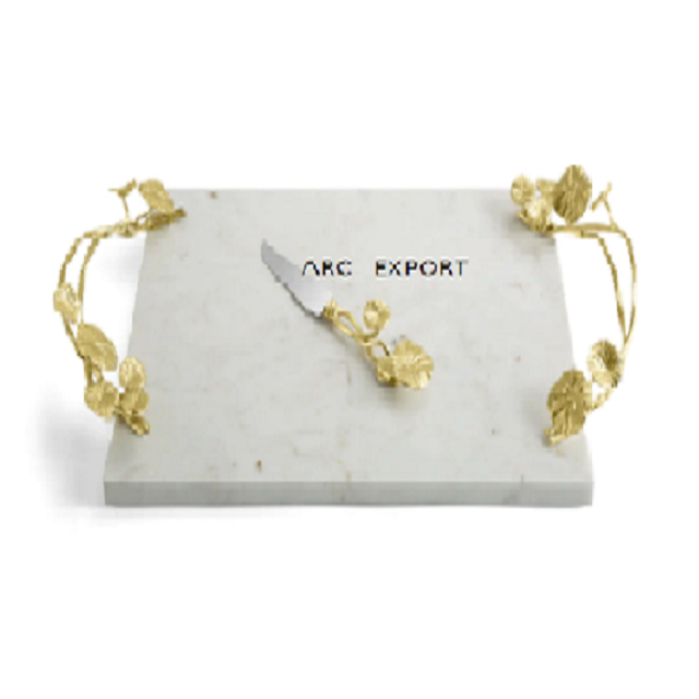 ถาดเสิร์ฟอาหารร้านอาหารและโรงแรมพร้อมที่จับโลหะแข็งแรงลายดอกไม้ถาดเสิร์ฟสองอันสำหรับทุกโอกาส
