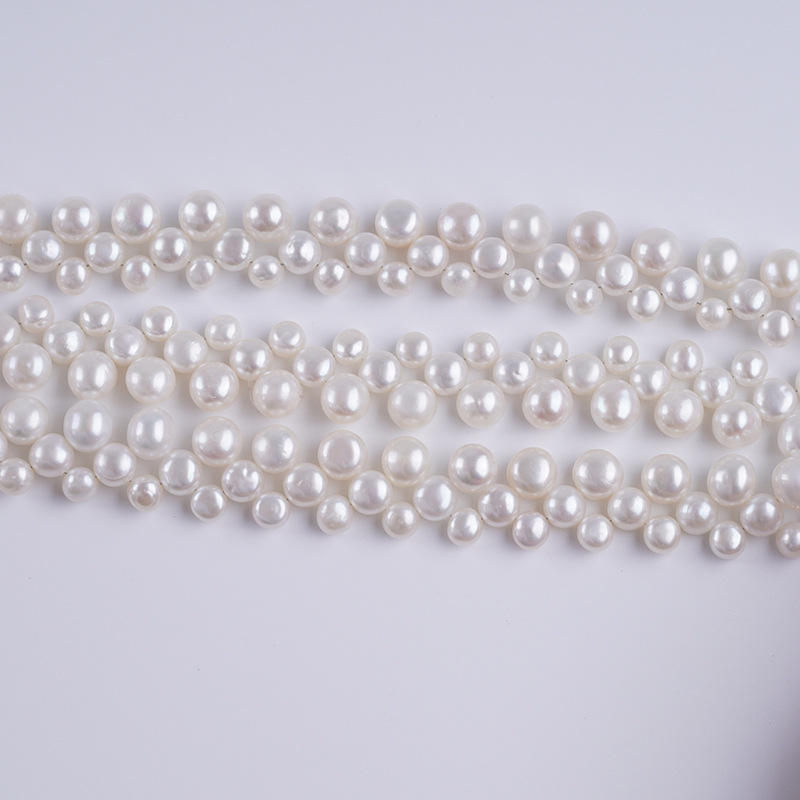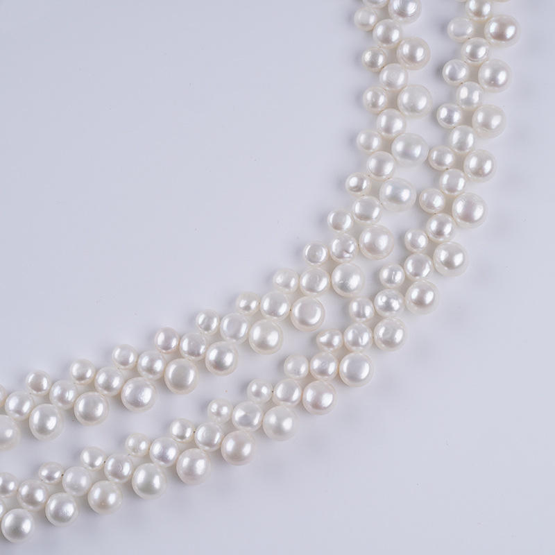 แหล่งขายส่งและปลีก สร้อยคอมุกน้ำจืดสีขาวทรงเกือบกลม ขนาด 6.5-7 มม. มุกกึ่งสำเร็จรูป ขายส่งโดยตรงจากผู้ผลิต