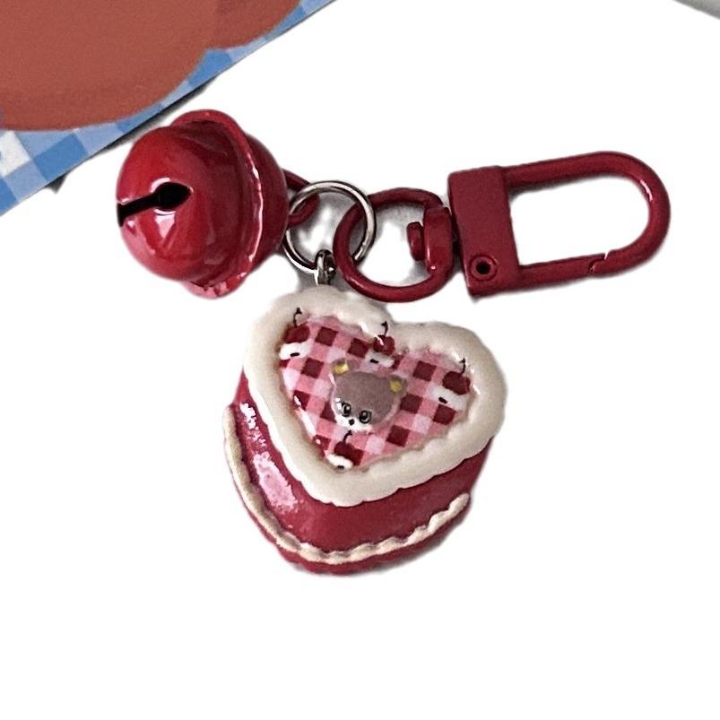 พวงกุญแจรูปการ์ตูนสีแดงเบอร์รี่ย้อนยุคพวงกุญแจรูปหมีน่ารักเค้กเชอร์รี่เบลล์จี้สำหรับแฟนสาว