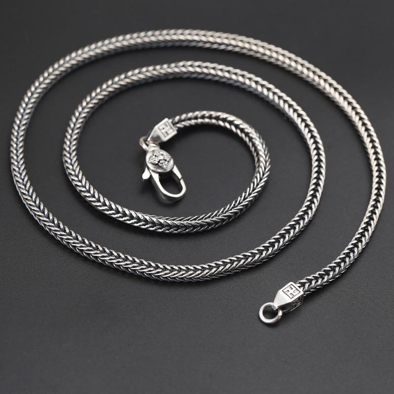 สร้อยงูเงินแท้ S925ทันสมัยย้อนยุคสำหรับผู้ชายและผู้หญิงสร้อยคอรูปหางจิ้งจอกเงินแท้สำหรับชาวไทย