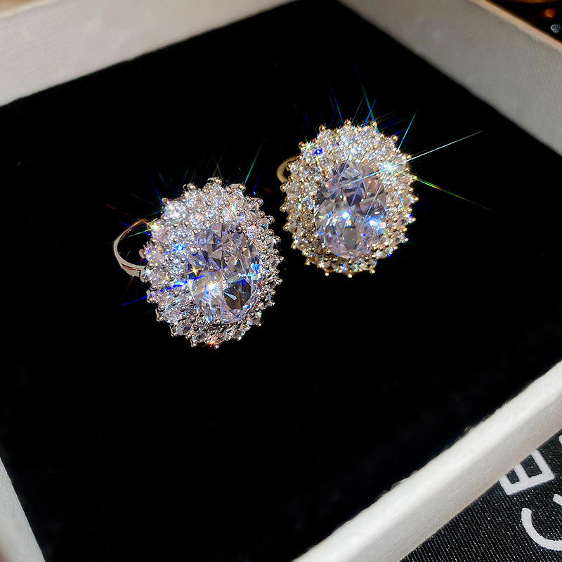 แหวนวงเปิดรูปไข่ประดับเพชรซิร์คอนสไตล์เรโทรสำหรับผู้หญิง ขายส่ง เหมาะสำหรับงานแต่งงาน งานเลี้ยงอาหารค่ำ