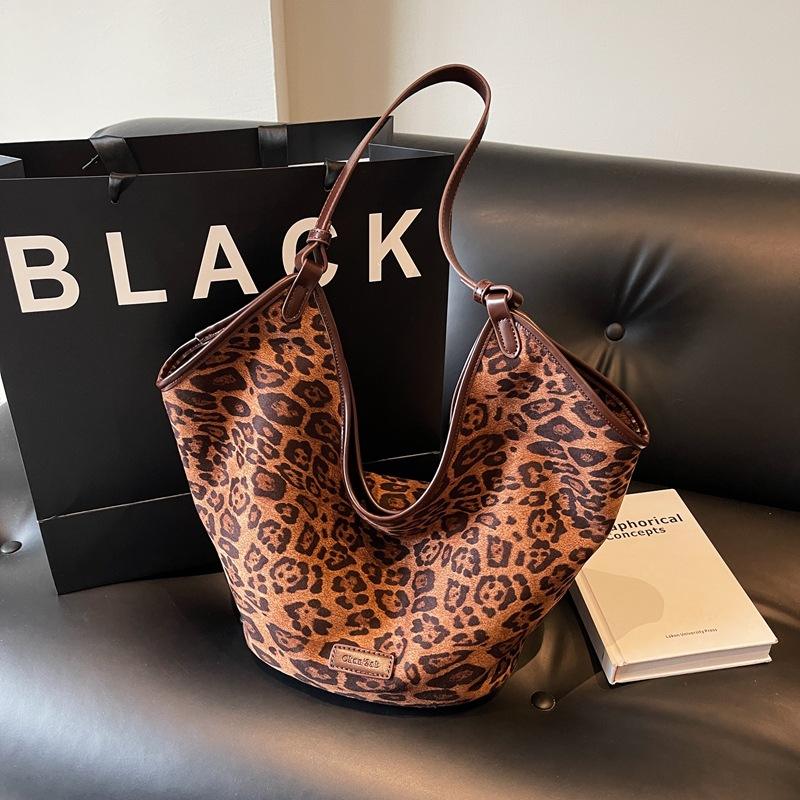กระเป๋าซิปใต้วงแขนสำหรับผู้หญิงกระเป๋าหนังกลับพิมพ์ลายเสือดาวใส่นอน