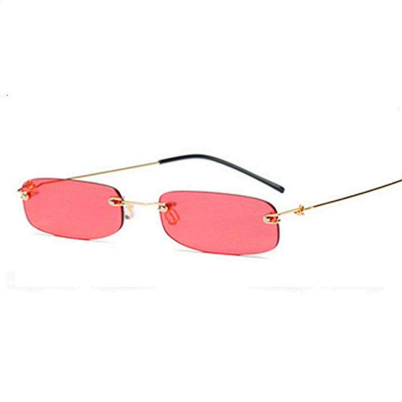 แว่นกันแดดทรงเหลี่ยมเล็กไร้กรอบโลหะสีแดงม่วงเหลืองสำหรับผู้ชายและผู้หญิงขายส่ง ป้องกันรังสียูวี 400