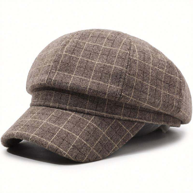 หมวกเบเรต์ทรงแปดเหลี่ยมผ้าคอร์ดูรอยสีพื้นสไตล์เรโทรสำหรับผู้หญิง ฤดูใบไม้ร่วงและฤดูหนาว หมวกเพนท์เตอร์ลายทางสไตล์เรโทร