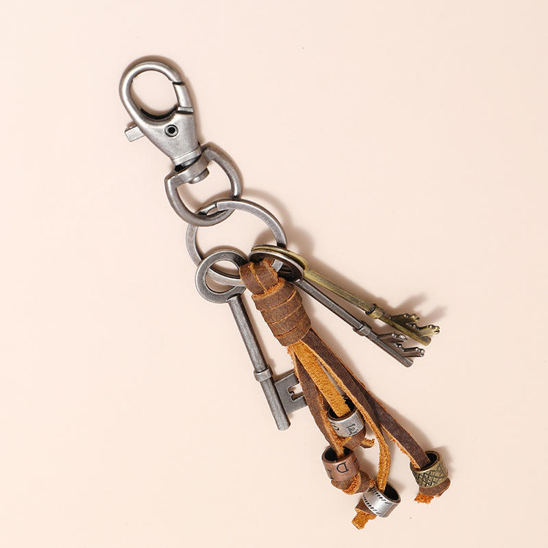 พวงกุญแจผู้ชายสไตล์เรโทรขายส่ง พร้อมพู่ยาวและดีไซน์หนังวัว อุปกรณ์เสริมหนัง PU แบบปรับแต่งได้