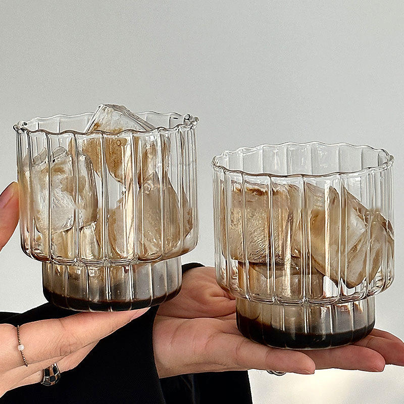 แก้วน้ำลายวินเทจแนวตั้งสำหรับร้านกาแฟ ทนความร้อน ใช้สำหรับลาเต้และเครื่องดื่มเย็น ผลิตจากแก้วคุณภาพ