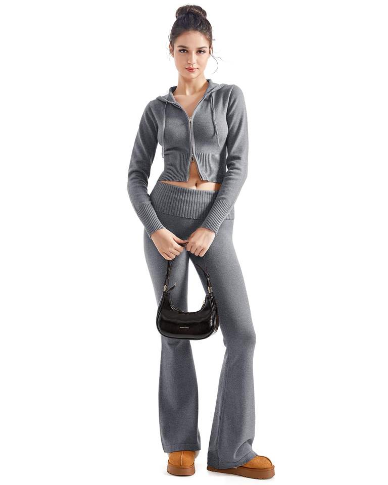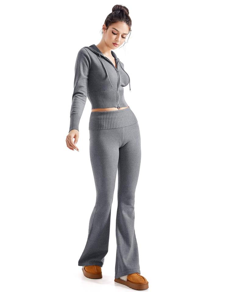 เสื้อมีฮู้ดแบบ Y2K แนวย้อนยุคของผู้หญิงชุดแนวสปอร์ตแบบลำลองมีฮู้ดมีปกเสื้อกางเกงขาบานโลโก้ออกแบบได้ตามต้องการ