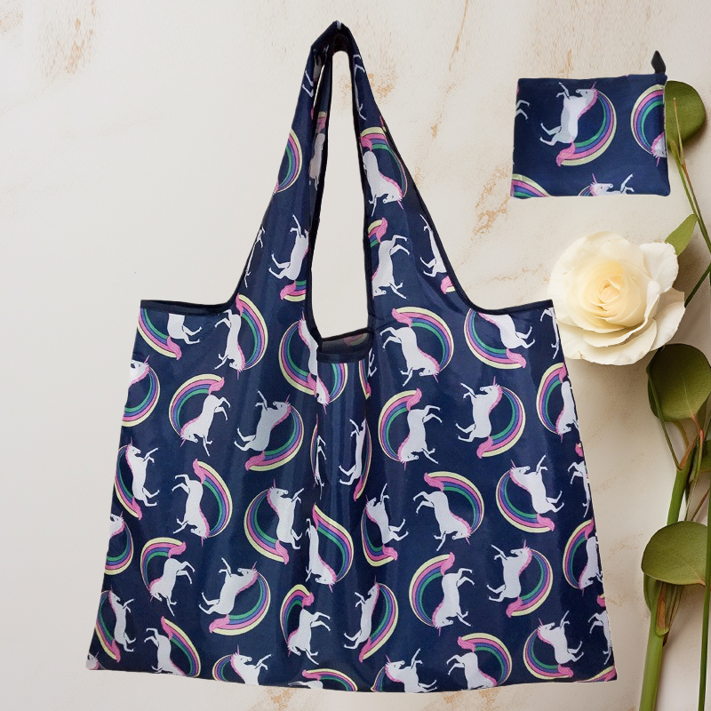 กระเป๋าหิ้วพับได้แบบขายส่ง กระเป๋าช้อปปิ้งโปรโมชั่นแบบรีไซเคิลทำจากโพลีเอสเตอร์รักษ์โลก พร้อมหูหิ้วแบบยาว