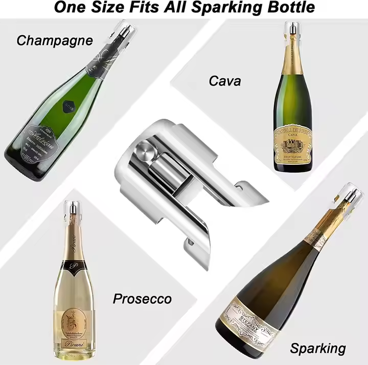 จุกปิดขวดไวน์สำหรับบาร์ปาร์ตี้ใช้ในบ้านประกายเลเซอร์สีเงินสแตนเลสใช้ซ้ำได้