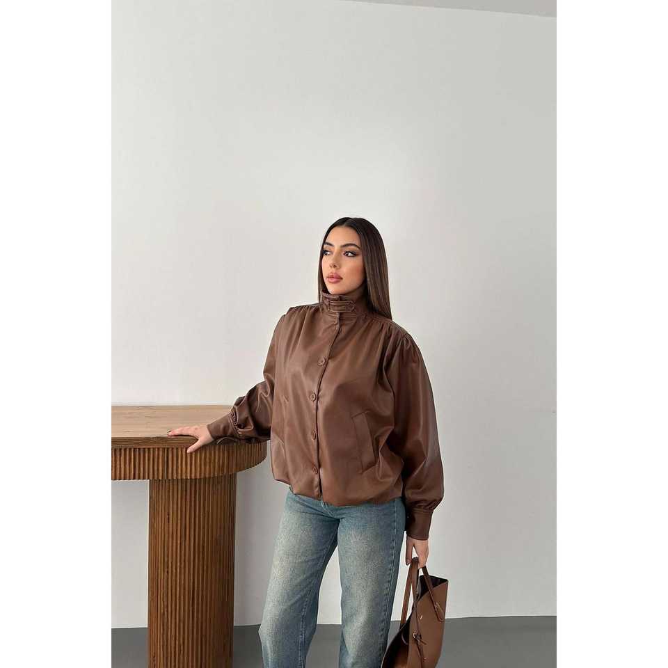เสื้อแจ็คเก็ตหนังแกะสีน้ำตาลแบบกลับด้านได้ ขายส่ง ซับในผ้าซาตินผสมสแปนเด็กซ์และผ้าลินิน สำหรับฤดูใบไม้ร่วง ติดกระดุม แต่งพู่และมุก