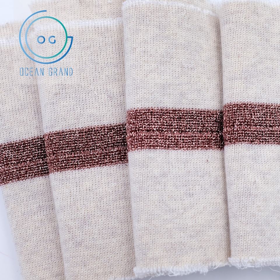 คำอธิบาย:ผ้าริบถักเรียบสไตล์ฝรั่งเศส สีโรสโกลด์ลูเร็กซ์ สำหรับข้อมือ ขอบเอว และปกเสื้อ