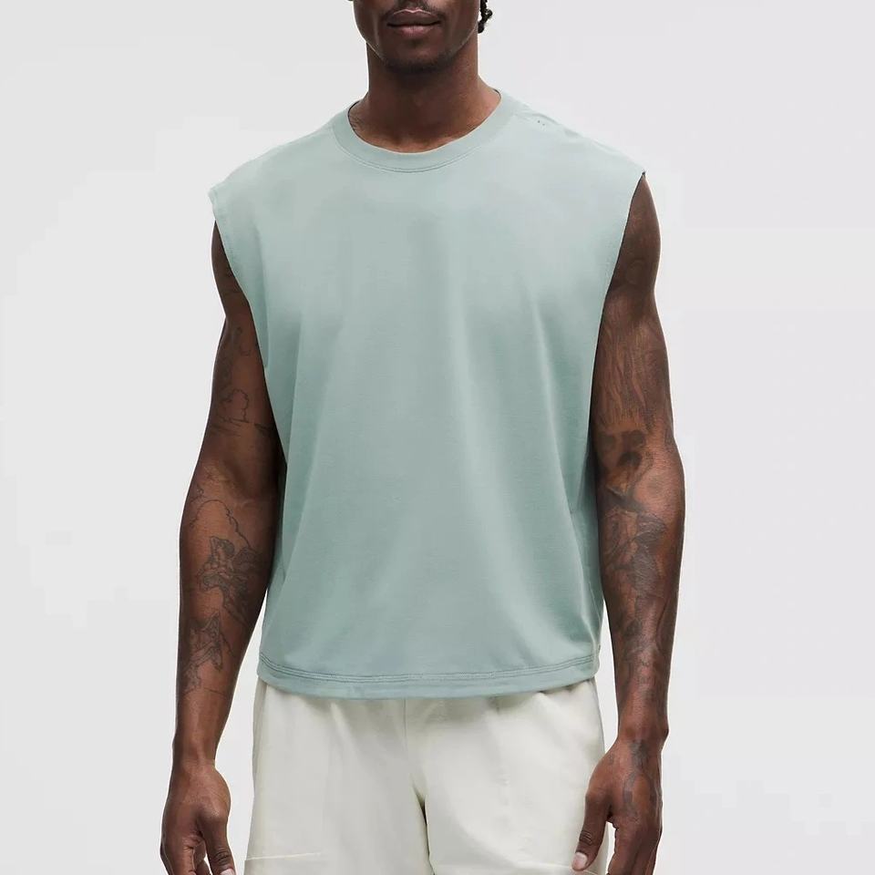เสื้อกล้ามคอตตอนแขนกุดสำหรับผู้ชายเสื้อแขนกุดสำหรับเล่นกีฬาทำจากผ้าฝ้ายออกแบบโลโก้ได้ตามต้องการ