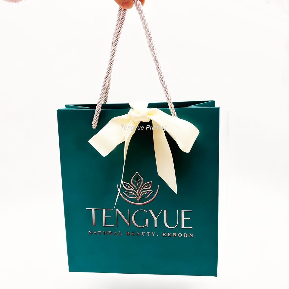 ถุงกระดาษหูหิ้วริบบิ้นสำหรับขายส่ง บรรจุภัณฑ์สำหรับขายปลีก เครื่องประดับ งานแต่งงานสุดหรู ร้านบูติก ของขวัญชิ้นเล็กๆ สำหรับเครื่องสำอาง