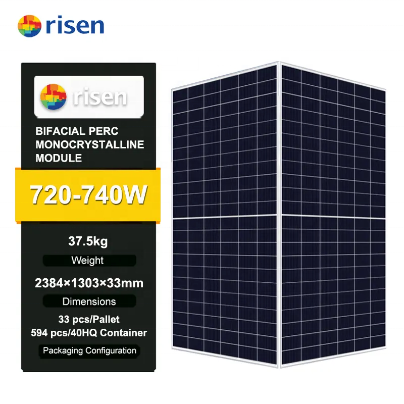 กระจกสองชั้น720W-740W ประสิทธิภาพการ IP68แผงโซล่าเซลล์ครึ่งเซลล์ PV โมโนคริสตัลไลน์ชนิด N-Type hjt