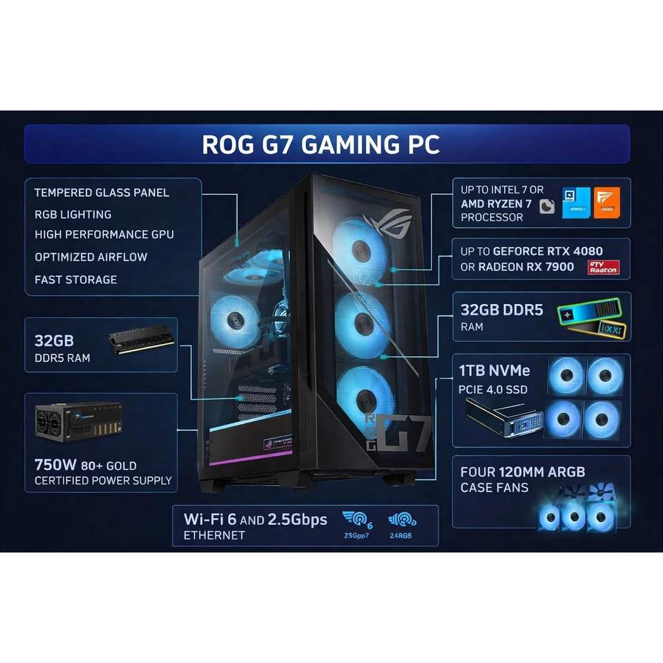 ขายส่ง G700 ROG เดสก์ท็อปการเล่นเกมพีซี Intel Core I12-Core อัลตร้า7 265F 32GB RAM 1TB NVMe SSD RTX 5060แป้นพิมพ์/เมาส์8GB