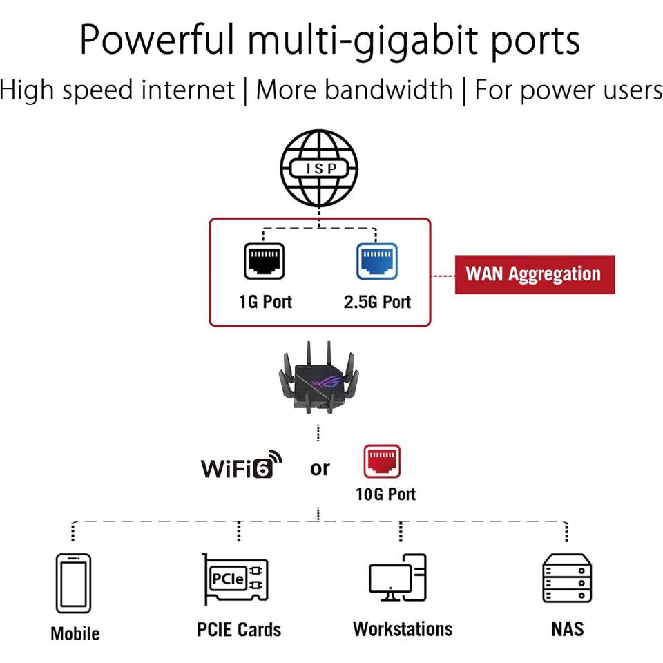 ROG Rapture GT เราเตอร์ AX11000 Pro Tri Band WiFi 6เราเตอร์เล่นเกมกับ QoS 4 LAN พอร์ต10G 2.5G รุ่น US