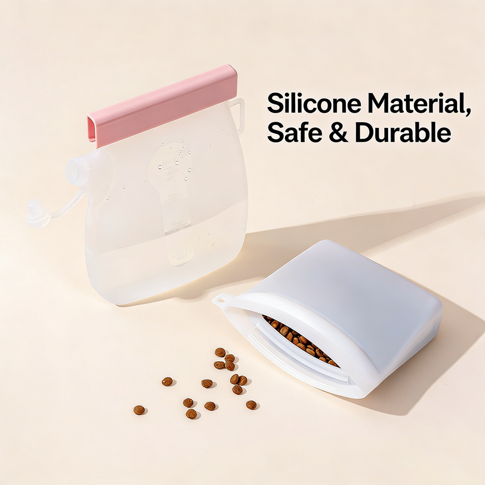 กระเป๋าใส่ขนมสัตว์เลี้ยงแบบพับได้ ยี่ห้อ Roki ผลิตจากซิลิโคนเกรดอาหาร ปลอดภัย เป็นมิตรต่อสิ่งแวดล้อม สำหรับสุนัขและแมว พร้อมฝาปิดแบบปิดเองได้ ขายส่ง