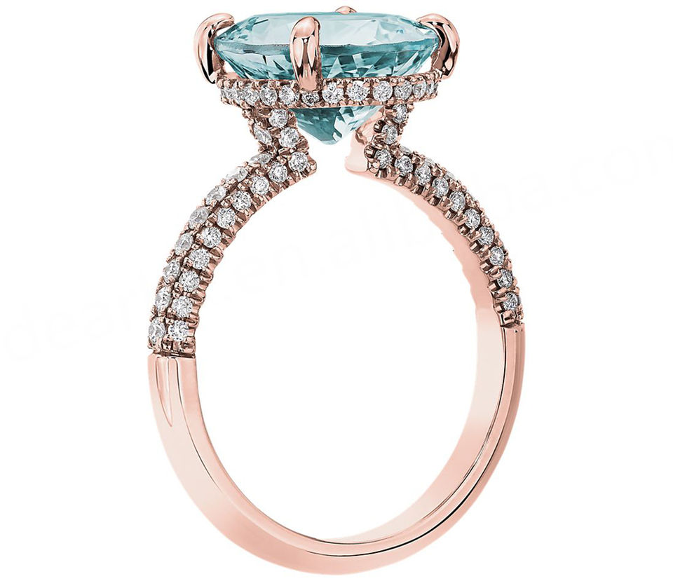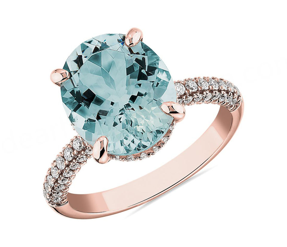 แหวนทองชุบโรสโกลด์ประดับพลอยอะความารีนสีขาวทรงรี แหวนพลอยธรรมชาติ ขายส่ง