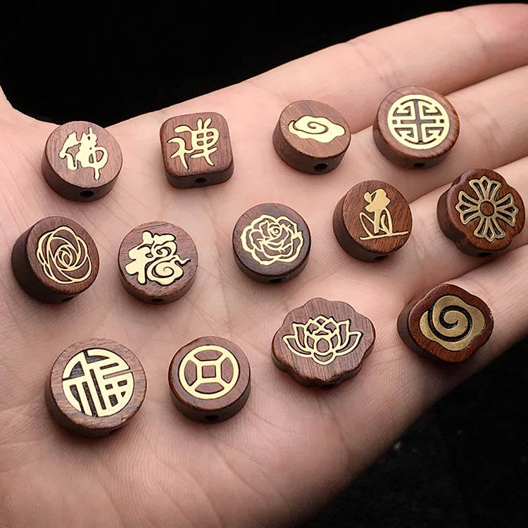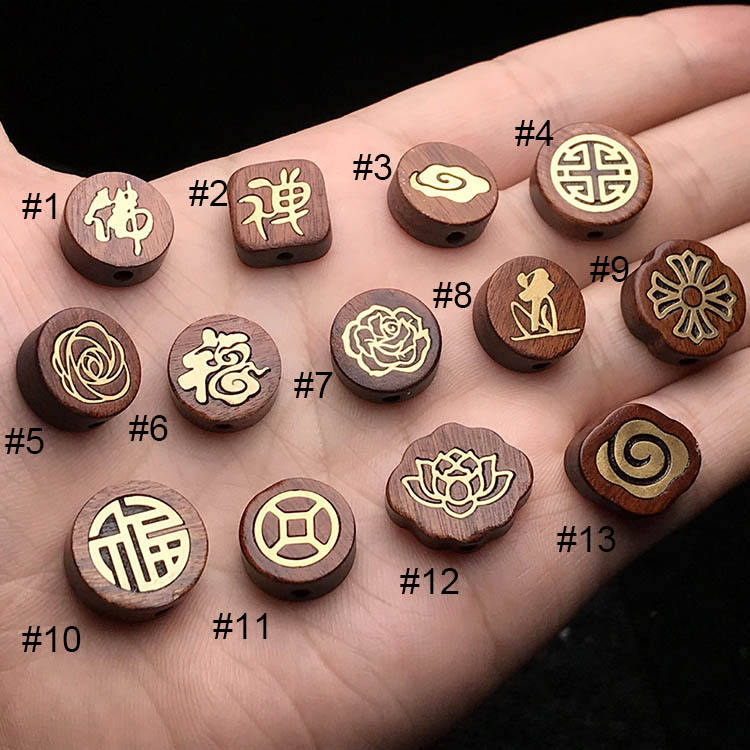 ลูกปัดทองเหลืองฝังไม้ธรรมชาติลูกปัดดอกบัวสำหรับทำเครื่องประดับ