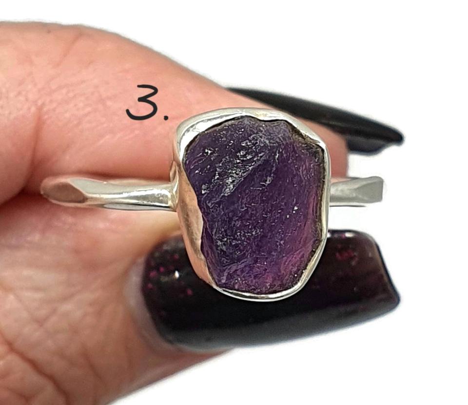 แหวนพลอยอเมทิสต์หยาบ8-9มม. ชุดแหวนของสะสม925อัญมณีเงินสเตอร์ลิงดีไซน์แบบใช้ค้อน