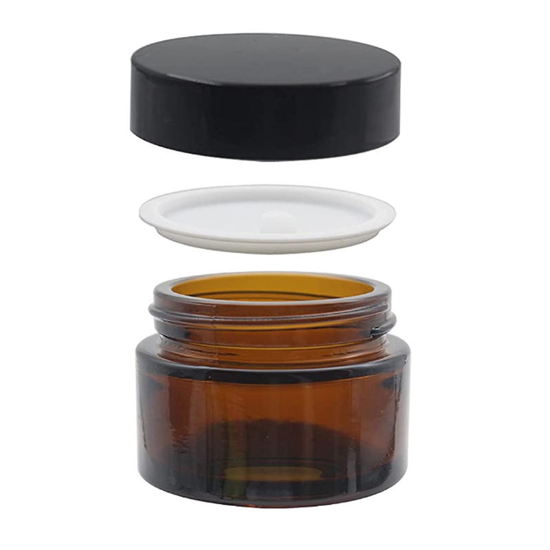 Wholesale Round Amber Glass Jars with Inner Liner black Lid for Lip Scrub Makeup Eyeshadow Slime Paint