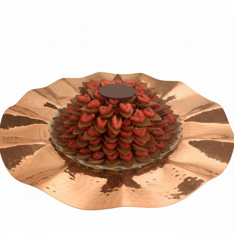 ถาดเสิร์ฟขนมหวานทรงกลมเคลือบทองแดงสำหรับขายส่ง ถาดใส่ขนม ถาดใส่ช็อกโกแลต ถาดเสิร์ฟของว่างสำหรับงานปาร์ตี้และงานแต่งงาน