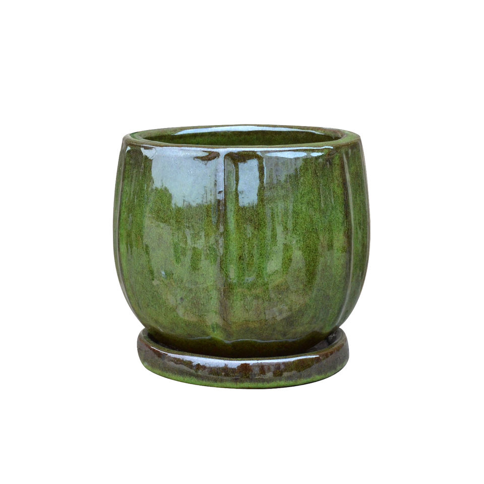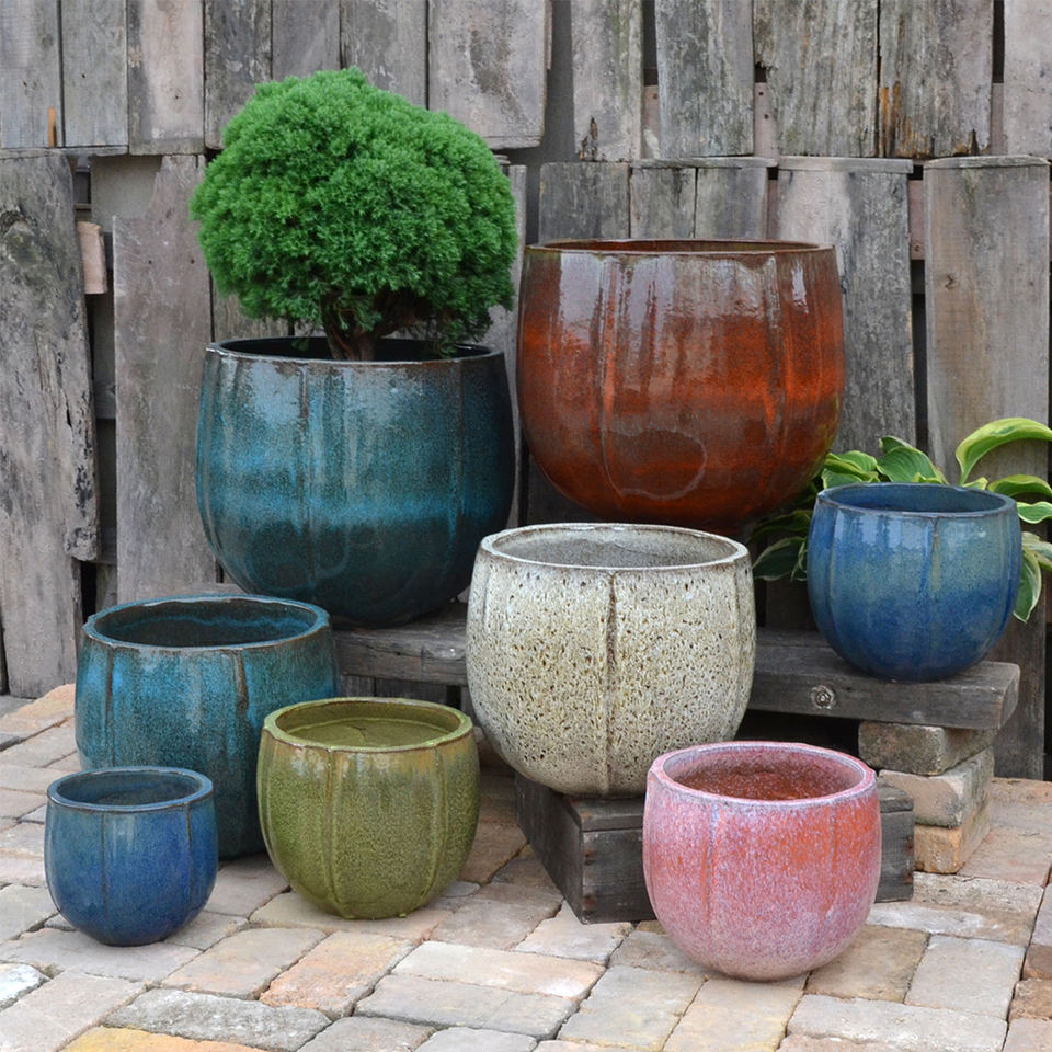 กระถางดอกไม้เคลือบเงาทรงกลมขายส่ง กระถางทรงจานใหญ่ สำหรับปลูกต้นไม้ในร่มและกลางแจ้ง เหมาะสำหรับบอนไซ ตกแต่งบ้านสไตล์ทรอปิคอล สำหรับงานแต่งงาน