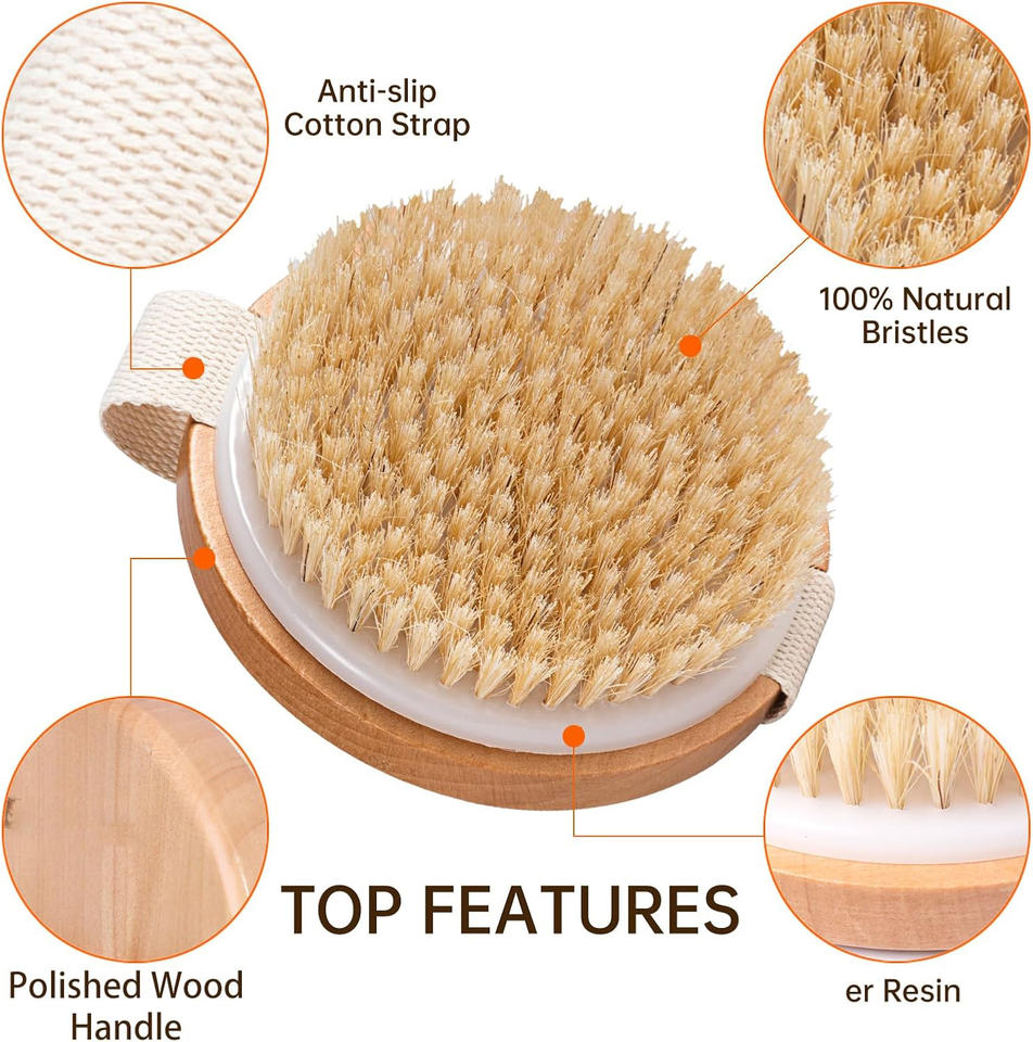 แปรงขัดตัวไม้ทรงกลมแบบขายส่ง แปรงอาบน้ำขนหมูป่าสำหรับขัดผิว